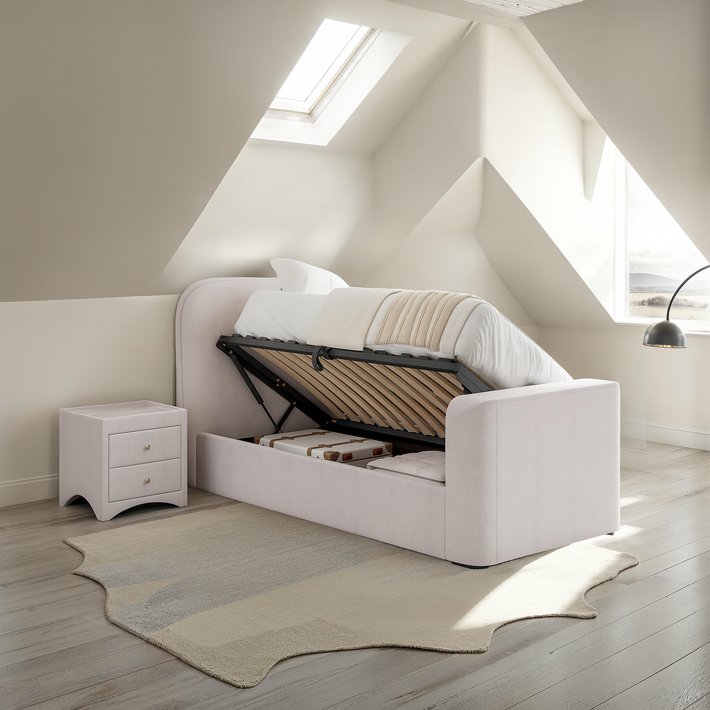Arla Ottoman Single TV Bed in Luxury Natural Cream